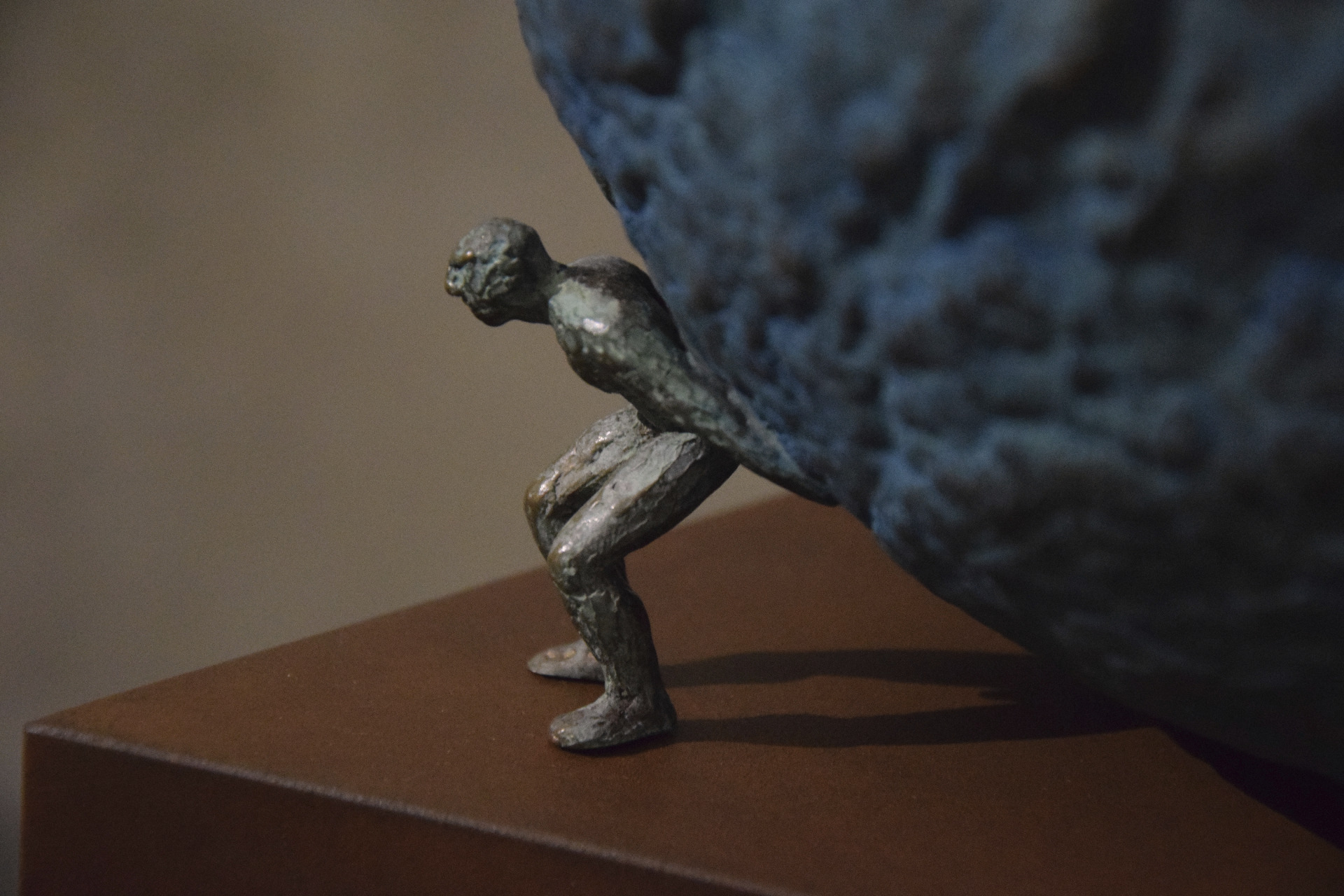 Dieses Foto ist beim Besuch einer Ausstellung entstanden. Für mich drückt es mit dem Mann, der die ganze Welt zu tragen scheint, eine gewisse Dominanz aus. Das Kunstwerk heisst übrigens "Die getragene Welt" und wurde von Steff Lüthi kreiert.